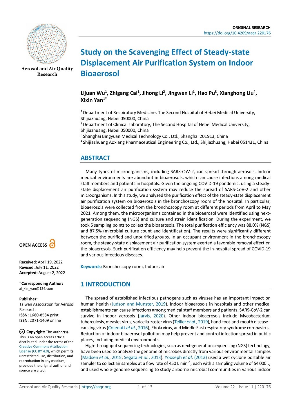 關(guān)于穩(wěn)態(tài)置換流空氣凈化系統(tǒng)對(duì)室內(nèi)生物氣溶膠清除效果的研究